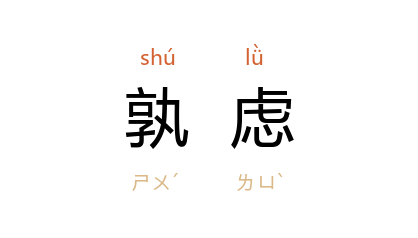引《礼记·表记》:“故君使其臣,得志则慎虑而从之,否则孰虑而从之。”《史记·樗里子甘茂列传》:“韩 亡, 公仲 且躬率其私徒以閼於 秦。愿公孰虑之。”《后汉书·袁术传》:“苟以悦主为美,不顾成败之计,古今所慎,可不孰虑!”