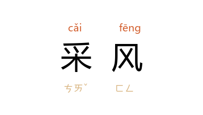 ⒈ 周代官府定期派人到民间采集诗歌,编成国风。后遂称搜集民歌为「采风」。