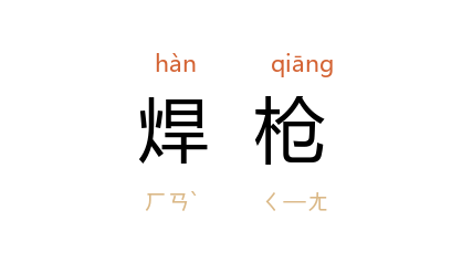 ⒈ 气焊用的带活门的工具。形状略像枪,前端有喷嘴。