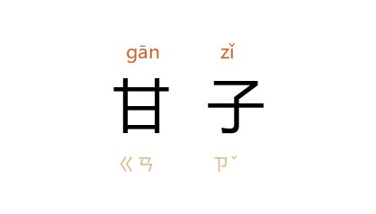 引晋 干宝 《搜神记》卷十七:“三人入山,见山顶有果树,众果毕植,行列整齐,如人行。甘子正熟。”唐 刘肃 《大唐新语·益州长吏》:“唐 益州 每岁进甘子,皆以纸裹之。”清 钱谦益 《绣斧西巡歌》之四:“迁官解道如甘子,甘子心头苦自饶。”