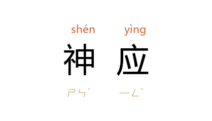 引《淮南子·原道训》:“物至而神应,知之动也。”三国 魏 曹植 《七启》:“神应休臻,屡获嘉祥。”《北史·齐纪上·高祖》:“﹝ 神武皇帝 ﹞尝乘驛过 建兴,云雾昼晦,雷声随之,半日乃絶,若有神应者。”