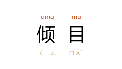 引南朝 宋 刘义庆 《世说新语·赏鉴》:“王 神意闲畅, 谢公 倾目。”《周书·令狐整传》:“整 进趋详雅,对扬辩畅,謁见之际,州府倾目。”《南史·谢颢传》:“言辞清丽,容仪端雅,左右为之倾目。”