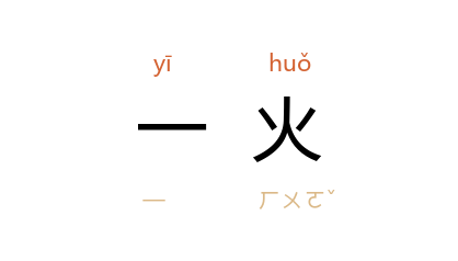 ⒈ 一点灯光或火光。一把火。古时兵制,十人为一火。同“一伙”。指若干人结合成的一群。
