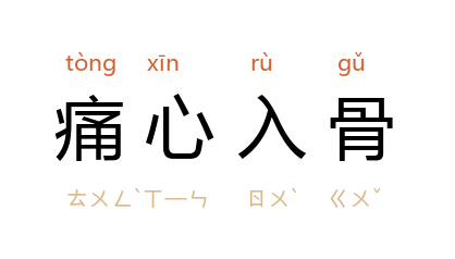 ⒈ 伤心、怨恨到了极点。也作「痛切心骨」、「痛心刻骨」。