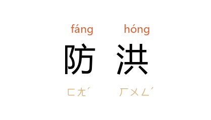 ⒈ 使用堤、墙、水库、泄洪道及其他手段防备洪水成灾。