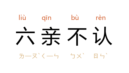 ⒈ 六亲:泛指一切亲戚。六亲不认,所有亲戚,一概不认。是说一个人过于冷酷自私,只顾自己,不顾别人。