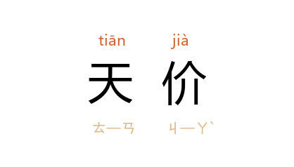 ⒈ 指极高的价格:这种房子的价格是每平方米六万元,堪称天价。