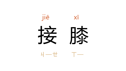 ⒈ 相近对坐。即与人席地或据榻而坐。晋·陶渊明〈闲情赋〉:「愿接膝以交言,欲自往以结誓。」也作「促膝」。