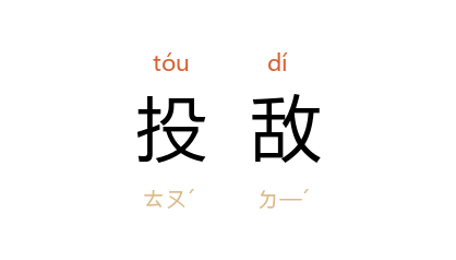 例如:「满清入关时,许多明朝的官吏宁可殉国,也不肯投敌。」