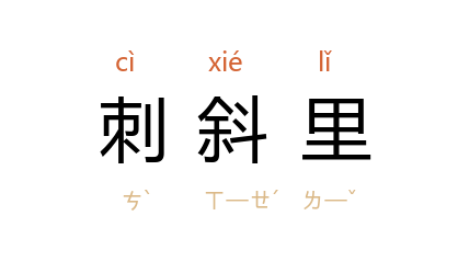 《古今小说·杨八老越国奇逢》:“杨八老 望见傍边一座林子,向刺斜里便走。”