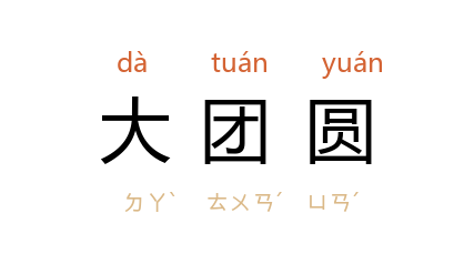 例如:「今年远赴国外的家人,也都回家过年,全家总算大团圆」。