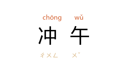 ⒈ 我国古代天文学的星象占候说认为,二十八宿中北方的虚宿,对冲南方的张、翼二宿,则张、翼二宿所对应的分野 周、楚 之地就会有祸变,张、翼星次“鹑火”、“鹑尾”,属午,故谓之“衝午”。参阅《左传·襄公二十八年》“周 楚 恶之” 唐 孔颖达 疏。