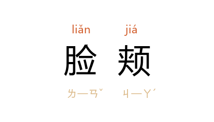 引巴金 《春天里的秋天》二五:“那些粉红的花瓣也就像我所爱的姑娘的脸颊。”周立波 《暴风骤雨》第一部十五:“酒过三巡, 韩爱贞 醉了,脸颊泛出桃花色。”杨沫 《青春之歌》第一部第三章:“啪、啪两个耳光打在女孩子的脸颊上。”