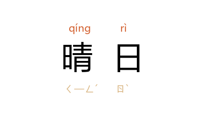 引唐 苏颋 《奉和春日幸望春宫应制》:“东望望春春可怜,更逢晴日柳含烟。”明 高启 《雨中晓卧》诗之一:“閒人晴日犹无事,风雨今朝正合眠。”毛泽东 《沁园春·雪》词:“须晴日,看红装素裹,分外妖嬈。”