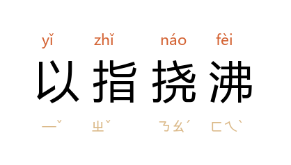 ⒈ 用手指搅动沸腾的水,想要使其变冷。比喻力量薄弱,不但无法奏效,反而造成自身的损害。