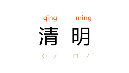 英语Qingming or Pure Brightness, 5th of the 24 solar terms 二十四節氣|二十四节气[er4 shi2 si4 jie2 qi5] 5th-19th April, Pure Brightness Festival or Tomb Sweeping Day (in early April), clear and bright, sober and calm, (of a government or administration) well ordered