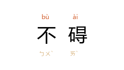 引宋 张端义 《贵耳集》卷下:“贫道铸者泥钱,不曾用铜,似不碍法令。”《儿女英雄传》第三回:“事体却不小,幸喜还不碍。”老舍 《骆驼祥子》十:“行,行,不碍!我是又冷又饿,一阵儿发晕,不要紧!”