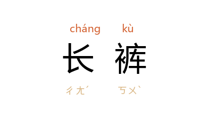 ⒈ 指由腰及踝,包覆全腿的裤子。