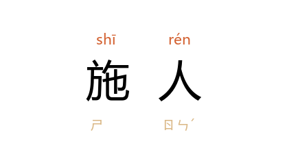 引汉 崔瑗 《座右铭》:“施人慎勿念,受施慎勿忘。”南朝 梁 任昉 《齐竟陵文宣王行状》:“廉於殖财,施人不倦。”亦指布施的人。 宋 徐照 《送奭上人化缘》诗:“阁盛灵佛像,碑载施人名。”
