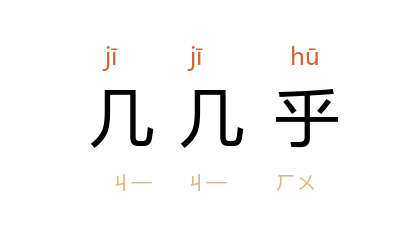 引明 陈治纪 《书<张文忠公文集>后》:“夫 伊尹 之於 桐,周公 之徂东,当其时,盖亦几几乎不免於不臣不弟之过矣。”清 陈康祺 《郎潜纪闻》卷一:“近者词臣入直大内,询以‘三天’之旧称,盖几几乎不知缘始矣。”宋庆龄 《为新中国而奋斗》:“在他( 孙中山 )和他的兄弟没有成人以前,他的家住在一间茅屋里,几几乎仅仅不致挨饿。”