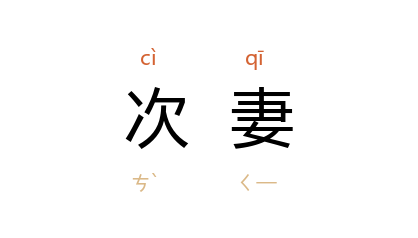引宋 赵与时 《宾退录》卷九:“萧中一 次妻 耶律氏,制谓‘次妻’二字,别无经据,乞改称‘小妻’。”元 关汉卿 《救风尘》第一折:“他每有人爱为倡妓,有人爱作次妻。”明 高明 《琵琶记·几言谏父》:“他媳妇虽有之,念奴家须是他孩儿次妻。”