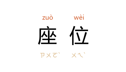 ⒈ 供人坐的地方。泛称椅凳。也作「坐位」。