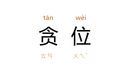 引《吕氏春秋·举难》:“以全举人固难,物之情也。人伤 尧 以不慈之名, 舜 以卑父之号, 禹 以贪位之意, 汤 武 以放杀之谋,五伯以侵夺之事,由此观之,物岂可全哉?”《史记·商君列传》:“非其位而居之曰贪位,非其名而有之曰贪名。”清 谭嗣同 《报贝元徵书》:“贪位恋权之足以丧身如此,徒枉其才而已。”