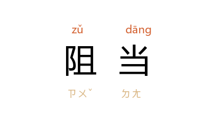 引《元典章·朝纲一·政纪》:“其间怎生不题説的,频烦上位,更阻当了先的言语。”《醒世恒言·汪大尹火焚宝莲寺》:“他做了这般勾当,恐夫人来时,随从众多,看出破绽,故此阻当。”清 李渔 《比目鱼·入班》:“这羞涩教人怎当!那窥覻如何阻当。”