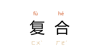 结合,合在一起。 艾青 《在汽笛的长鸣声中》:“人的思维活动所产生的联想、想象,无非是生活经验的复合。在这种复合的过程中产生了比喻。”