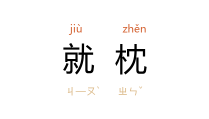 引《汉书·卷九九·王莽传下》:「读军书倦,因冯几寐,不复就枕矣。」《初刻拍案惊奇·卷二三》:「正要就枕,忽听得有人敲门响。」