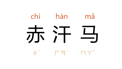 ⒈ 即汗血马。汉武帝时伐大宛得千里马,其马汗出如血,后因以“赤汗马”泛指名马。