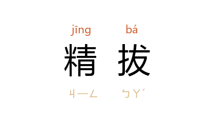 引《苕溪渔隐丛话前集·五柳先生上》引 宋 范正敏 《遯斋闲览》:“然则 渊明 趣向不羣,词彩精拔, 晋 宋 之间,一人而已。”明 谢榛 《四溟诗话》卷四:“镇康王 西巖 《题宋参政瞻远楼》:‘江楼悬树杪,山色到窗中。’精拔有骨,上句尤奇。”《古今小说·杨谦之客舫遇侠僧》:“辞旨精拔,愈出愈奇。”