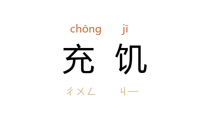 ⒈ 亦作“充饥”。进食解饥。见“充飢”。