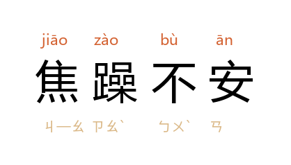 ※ "焦躁不安"的意思解释、焦躁不安是什么意思由国学字典提供。焦躁不安的造句