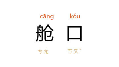 ⒉ 供出入舱室或贮藏室的船舱开口,特指船舶甲板之间的通道口。