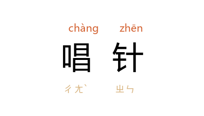 ⒈ 电唱机唱头上装的针。藉著唱针的运转,唱头将音沟的振动,转换成电的信号。可分为圆形、椭圆形及夏巴塔形(Shabata)三种。