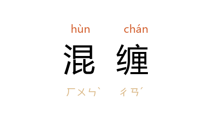 引《儒林外史》第十九回:“你在客边要做些有想头的事,这样人同他混缠做甚么?”瞿秋白 《文艺论集·文艺的自由和文学家的不自由》:“说 钱杏邨 把 波格唐诺夫,卢那察尔斯基,未来派……东扯扯,西拉拉的混缠在一起。然而他自己呢?他把 普列汉诺夫 和 安得列耶夫,艺术至上论派等等混缠在一起。”