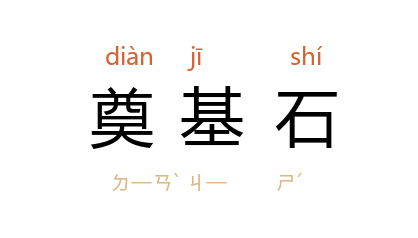 ⒈ 奠定建筑物基础的石头。多比喻使事物得以产生、发展的稳固的根基。