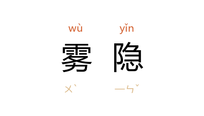 引唐 薛能 《孔雀》诗:“曾处嶂中真雾隐,每过庭下似春来。”宋 叶适 《罗袁州文集序》:“蔚豹之泽必雾隐,孔鸞之舞必日中。”元 王恽 《李相师诗》:“雾隐云驤虎豹文,眼中歷歷説承恩。”