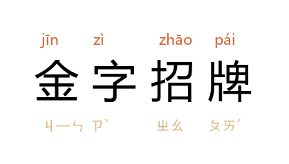 ⒈ 指商店用金粉涂字的招牌。比喻在公众中信誉卓著者。比喻冠冕堂皇的名义或称号。