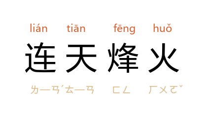 引清 彭孙贻 《螺川遇王大翼》诗:“连天烽火子远行,苍莽江山入羣寇。”《花月痕》第八回:“南望仓皇,连天烽火;西行躑躅,匝地荆榛。”李大钊 《南天动乱适将去国忆天问军中诗》:“无限伤心劫后话,连天烽火独思君。”