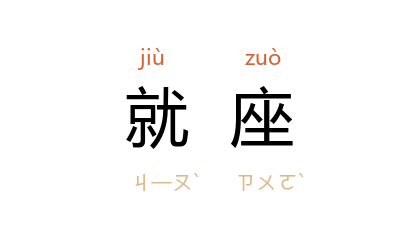 ⒈ 入坐。唐·韩愈〈石鼎联句序〉:「道士寂然若无闻也,累问不应,二子不自得,即退就座。」也作「就坐」。