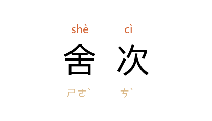 引语本《左传·庄公三年》:“凡师一宿为舍,再宿为信,过信为次。”《宋史·职官志四》:“监掌供奉天子玉食、医药、服御、幄帟、舆輦、舍次之政令。”