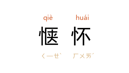 引唐·孟郊〈石淙〉诗一〇首之九:「惬怀虽已多,惕虑未能整。」《红楼梦·第一六回》:「椒房眷属入宫,未免有国体仪制,母女尚不能惬怀。」