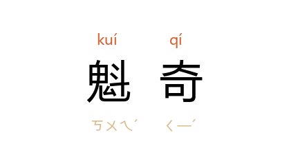 引《晋书·赫连勃勃载记论》:“然其器识高爽,风骨魁奇, 姚兴 覩之而醉心, 宋祖 闻之而动色。”唐 韩愈 《送廖道士序》:“意必有魁奇忠信材德之民生其閒,而吾又未见也。”清 戴名世 《<金正希稿>序》:“而魁奇英伟之才,反遗弃摈斥於荒山墟市,无可如何而付之一死。”清 方履籛 《<河内县志>叙传》:“机神独运,遂炫魁畸。”