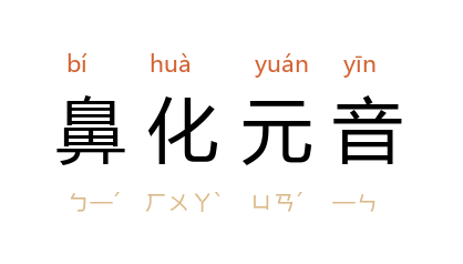 ⒈ 发一个元音时,让气息从口腔和鼻腔同时流出,便成为鼻化元音。