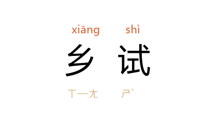 ⒈ 科举考试名。(1) 金 人科举分乡试、府试、省试、御试四级。士子先于诸州分县赴试,号为“乡试”,榜首曰“乡元”,亦曰“解元”。后于 章宗 明昌 元年废乡试。参阅 宋 洪迈 《松漠纪闻续》。(2) 元 代每三年一次,十一个行省, 河东、山东 二宣慰司与 直隶省 四路举行乡试。中式者仅可由此应会试,不可入仕。参阅《元史·选举志》。(3) 明 清 两代每三年一次在各省省城举行乡试。中式者称“举人”。即会试不第,亦可依科选官。参阅 清 赵翼 《陔馀丛考·举人》。