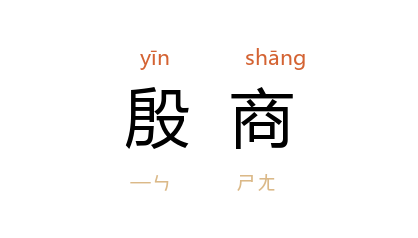 ⒈ 朝代名。其始祖 契 封于 商 ; 汤 有天下,遂号为 商。后来屡次迁都,到 盘庚 迁 殷 地后,改为 殷,亦称 殷商。