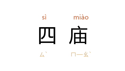 引《礼记·丧服小记》:“王者禘其祖之所自出,以其祖配之,而立四庙。”郑玄 注:“高祖以下。与始祖而五。”孔颖达 疏:“而立四庙者,既有配天始祖之庙,而更立高祖以下四庙,与始祖而五也。”清 方苞 《教忠祠规序》:“古者建国始得立五庙, 北宋 以前犹有四庙、三庙、二庙之制。”