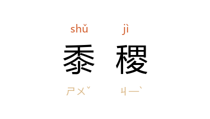 ⒈ 黍和稷。为古代主要农作物。亦泛指五谷。《诗·王风·黍离》:“彼黍离离,彼稷之苗。”后因以“黍稷”为感叹古今兴亡之典。